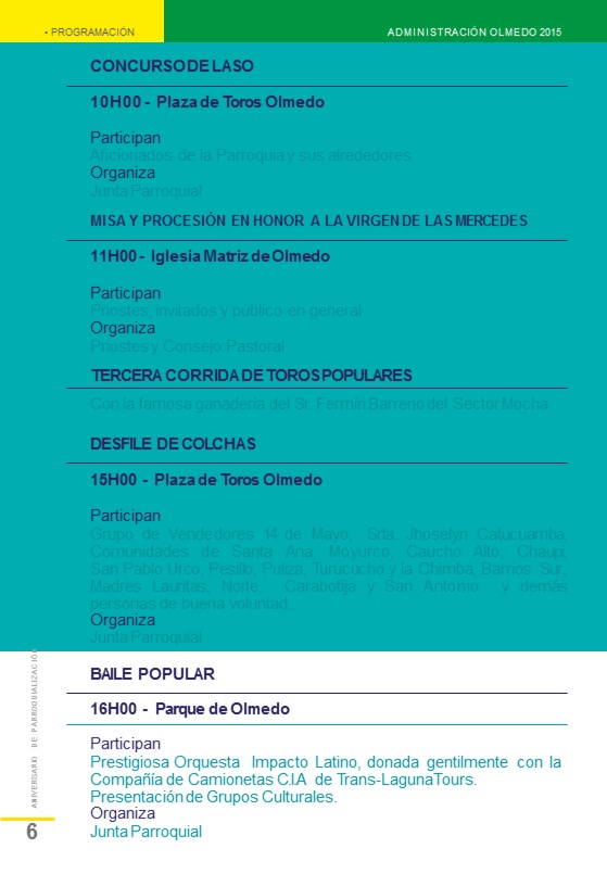 Parroquialización de Olmedo 112 años